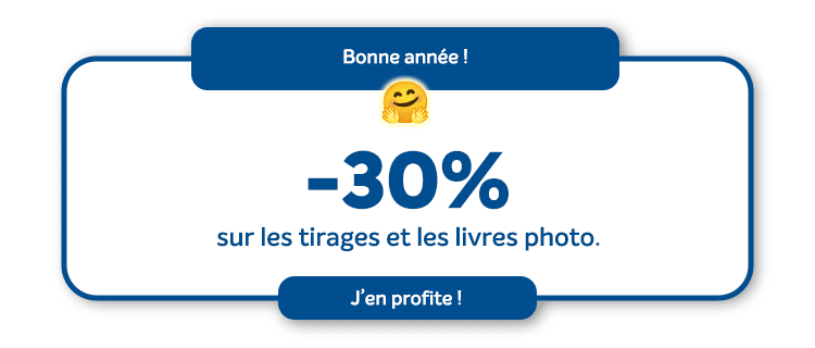 Avec notre code NEWYEAR-30, bénéficiez de 30% de remise sur vos tirages photo premium et vos livres photo.